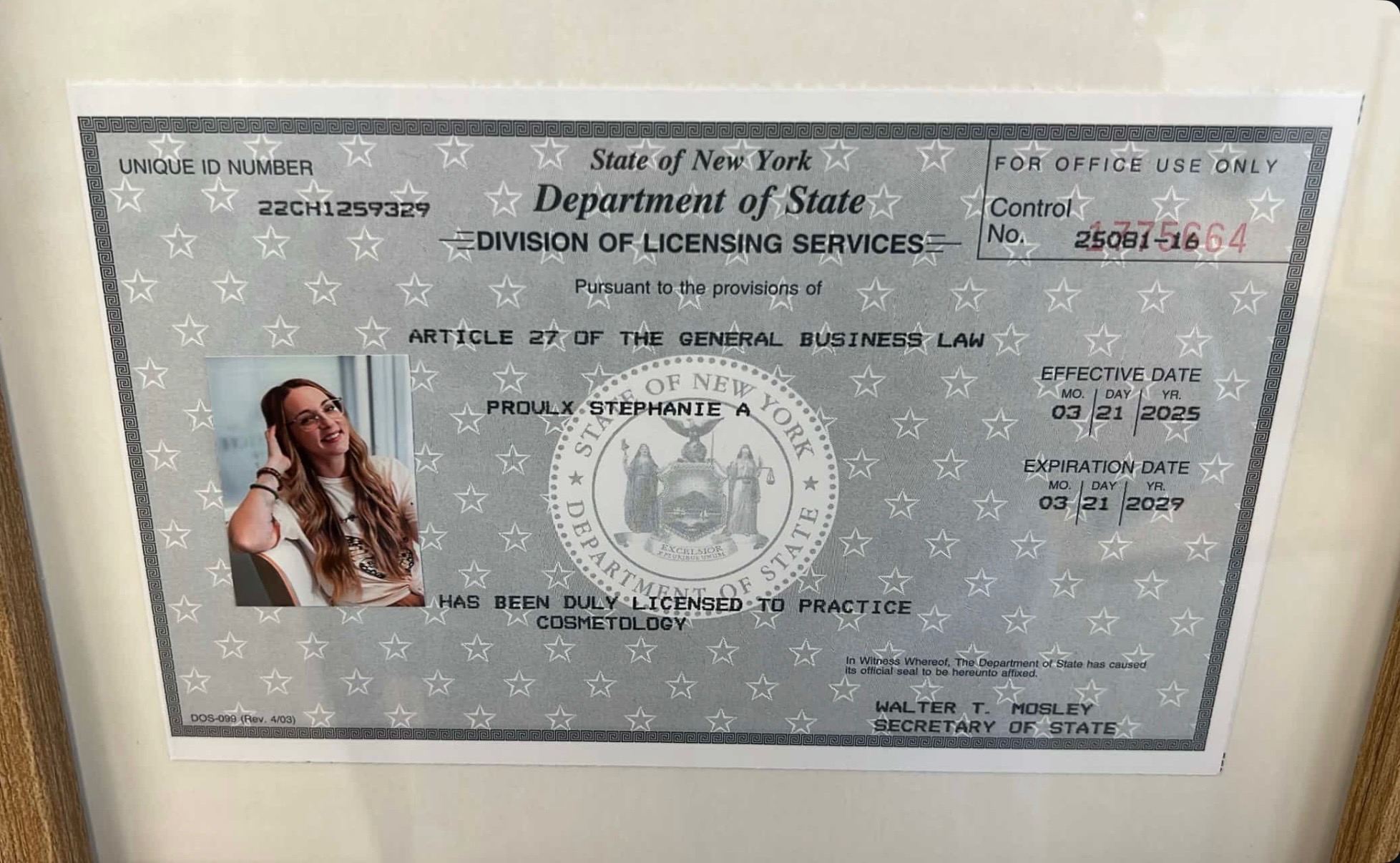03/24/25 | Stephanie Proulx | Sage + Stone Hair Lounge | 3147 Delaware Ave Suite B | Kenmore | NY | 14120 | Approved |