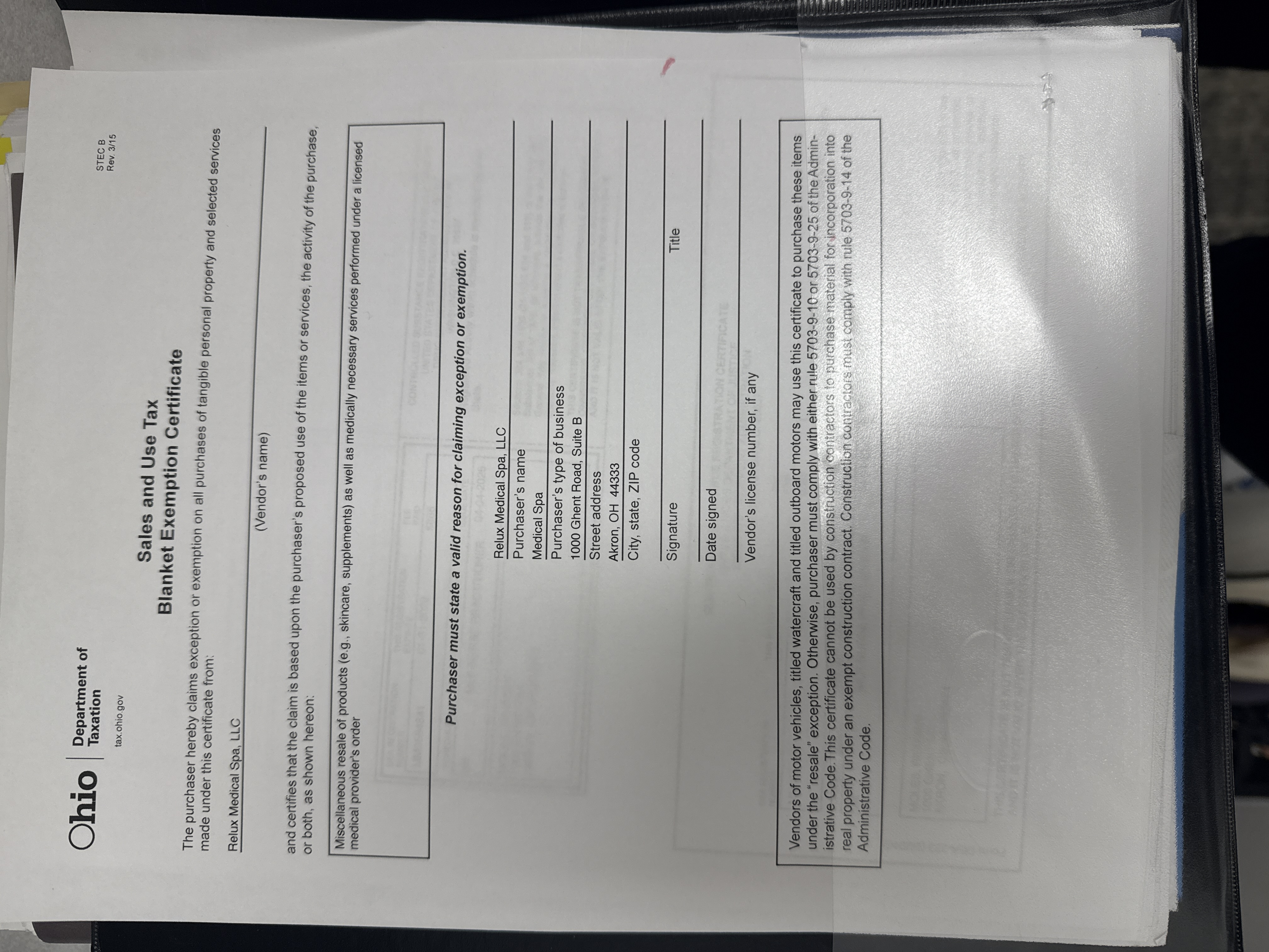 02/06/25 | Reannin Moles | ReLux Medical Spa, LLC | 1000 Ghent Road, Suite B | Akron | OH | 44333 | Pending |