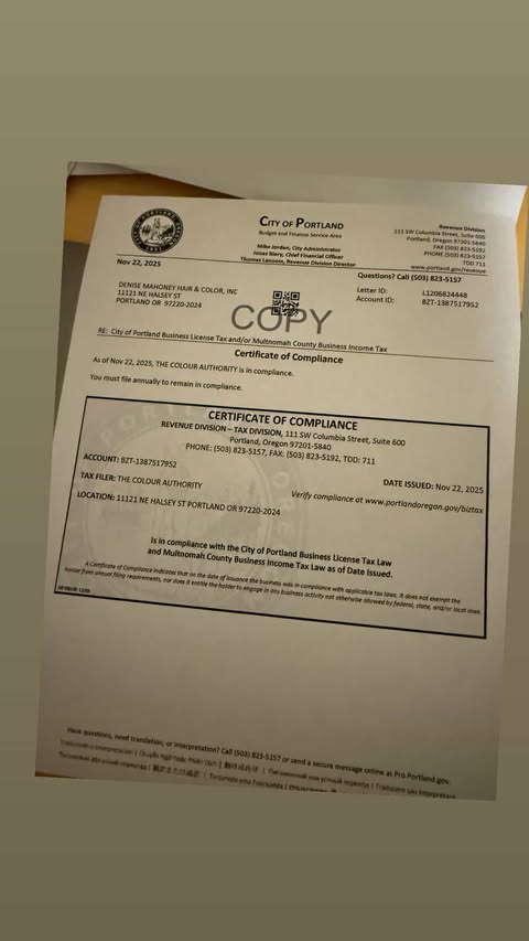 | 11/25/25 | Denise Mahoney | The Colour Authority | 11121 NE Halsey St. | Portland | OR | 97220 | Pending |