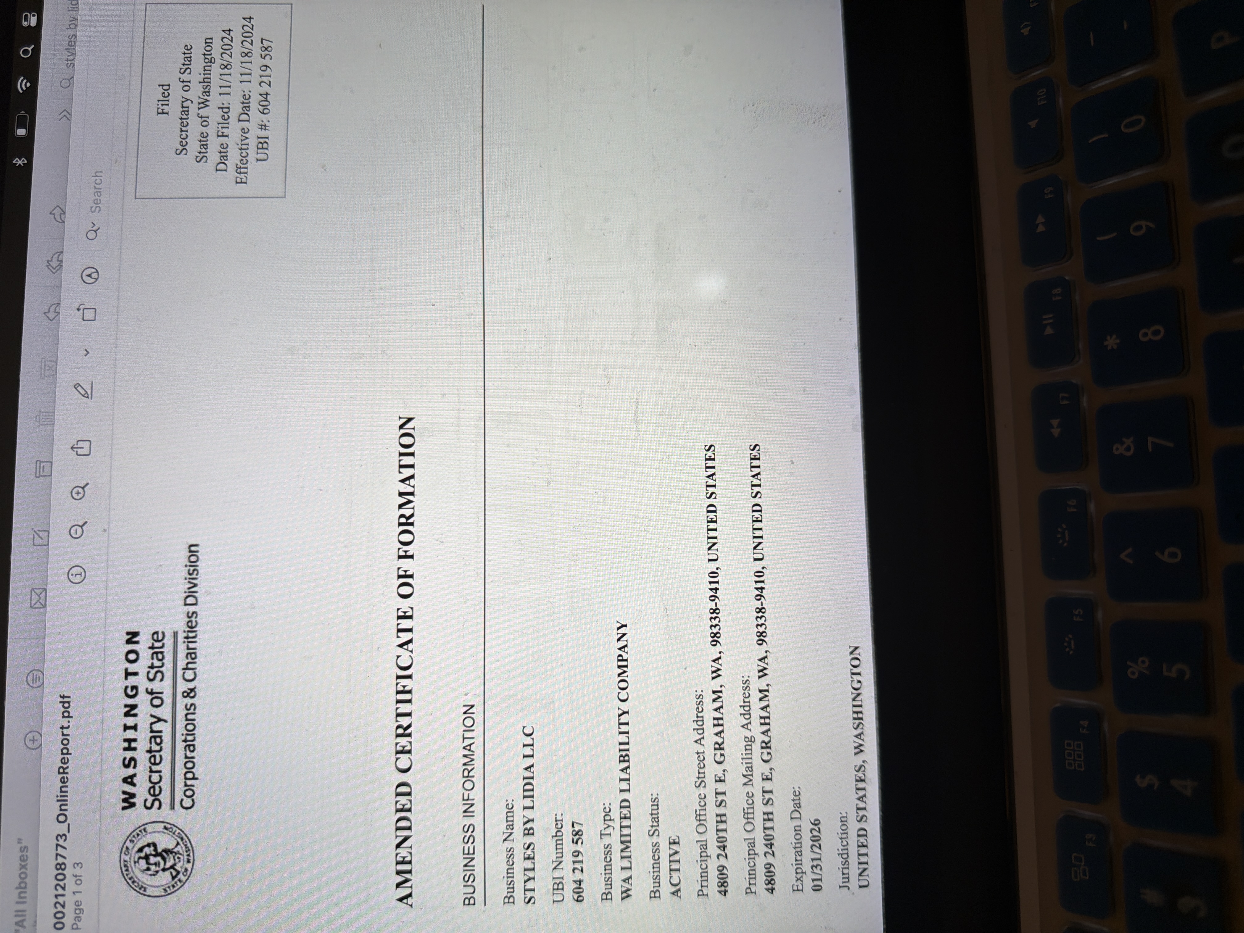 | 01/01/25 | Lidia Legkun | Stylesbylidia | 4809 240th St E | Graham | WA | 98338 | Pending |